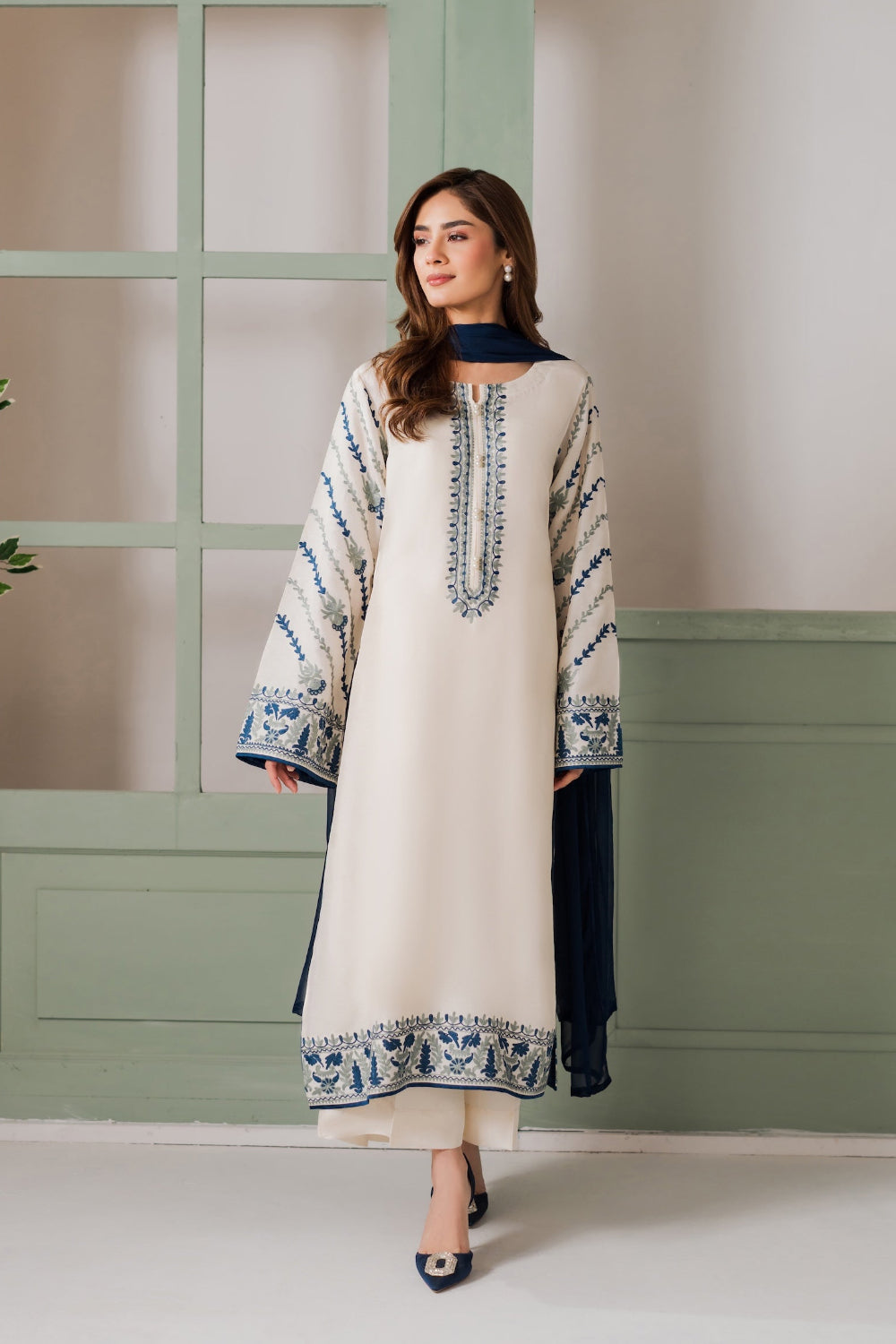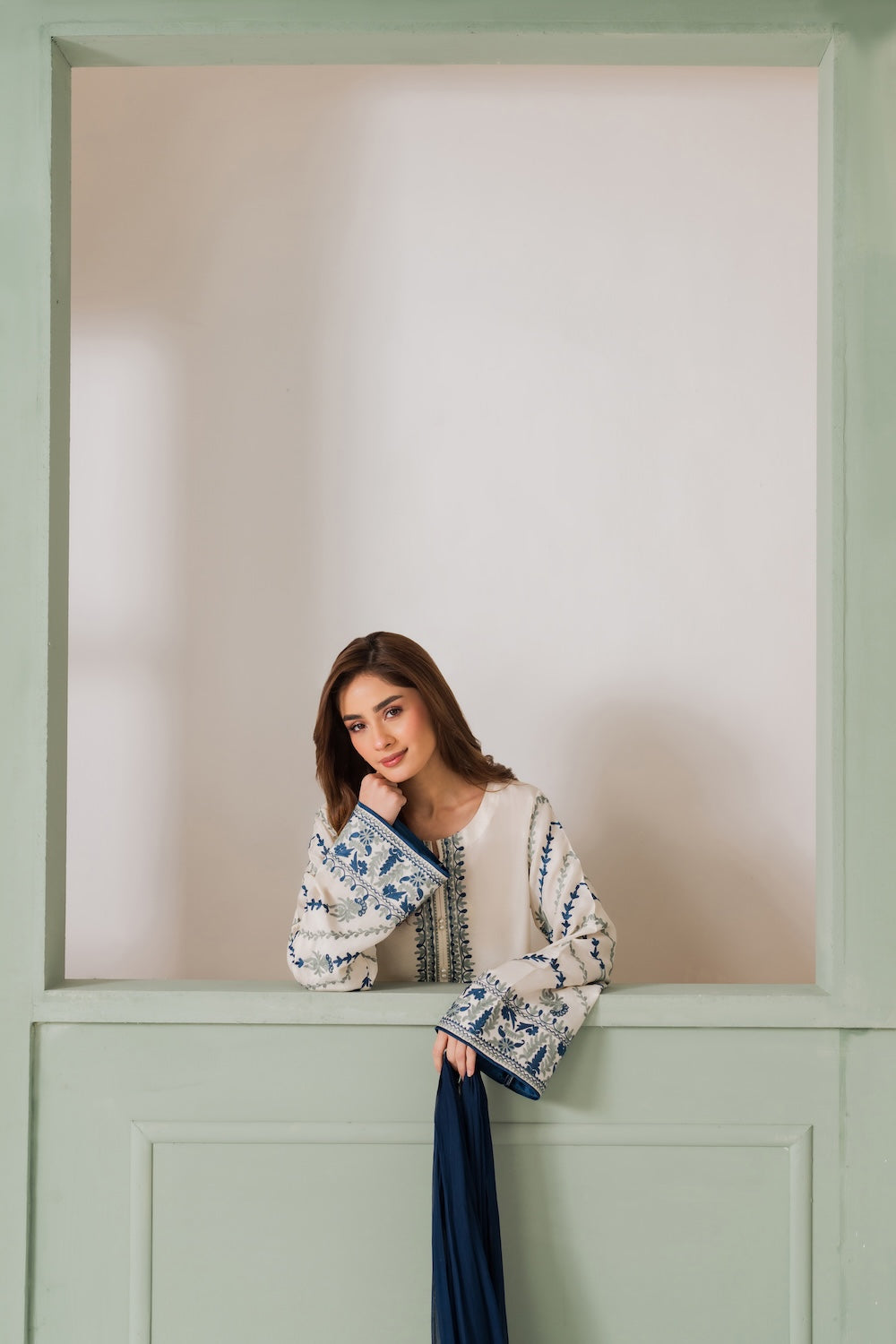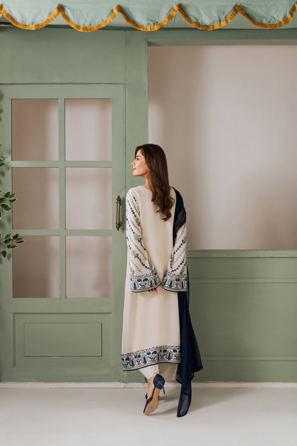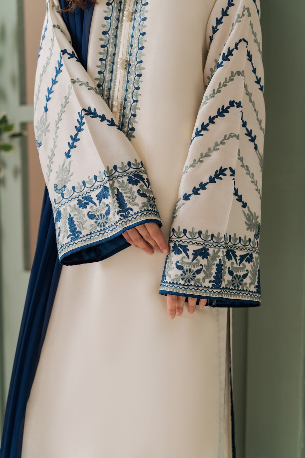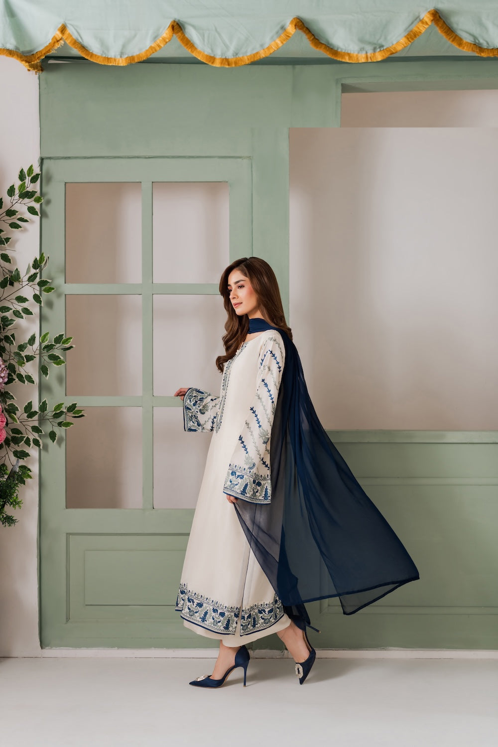 Embrace festive elegance this Eid with our off-white 2-piece outfit, featuring a hand-aari embroidered shirt adorned with delicate design. The intricate detailing adds a subtle sparkle, beautifully complementing the soft, feminine hue. Perfectly balanced between tradition and contemporary style, this outfit is ideal for Eid celebrations and daytime festivities.