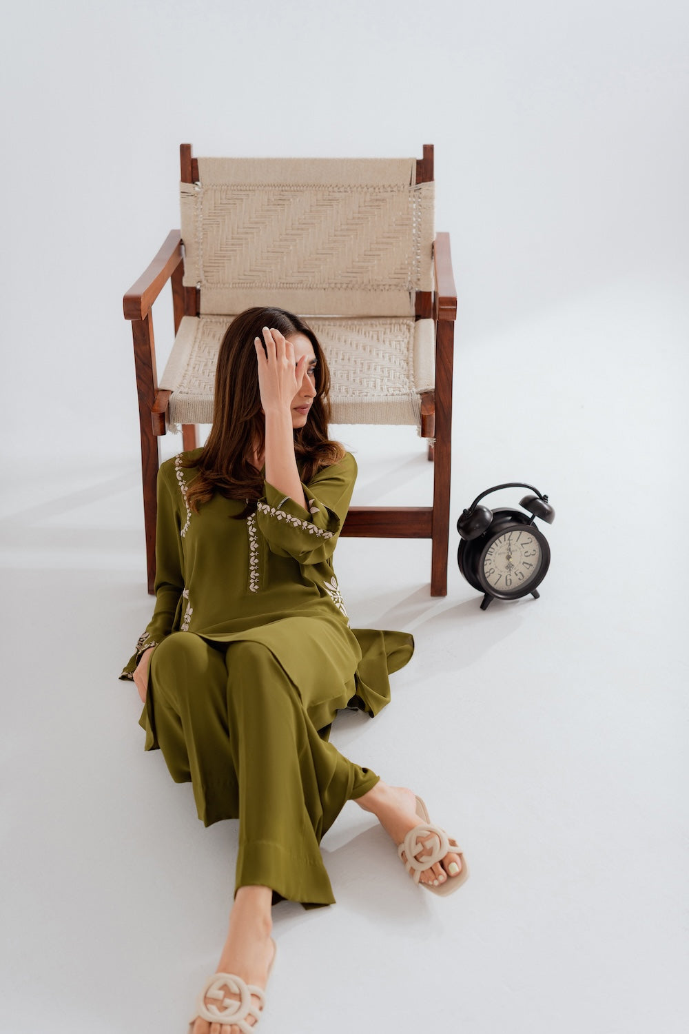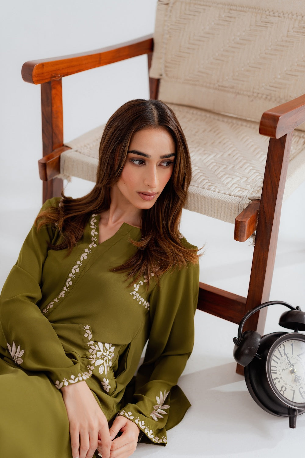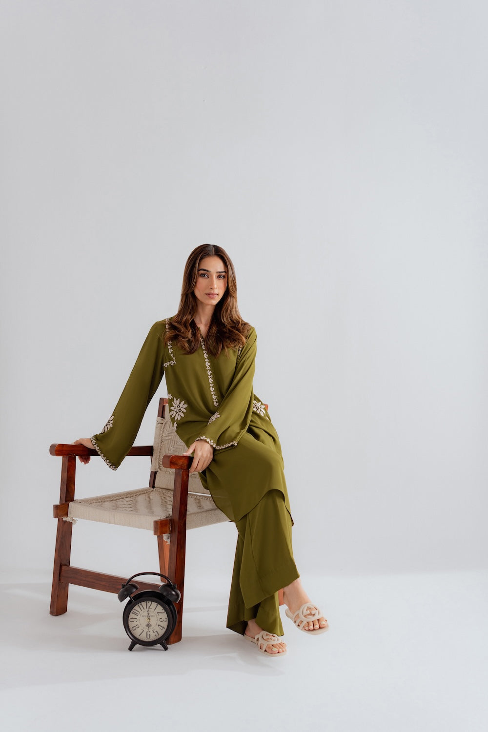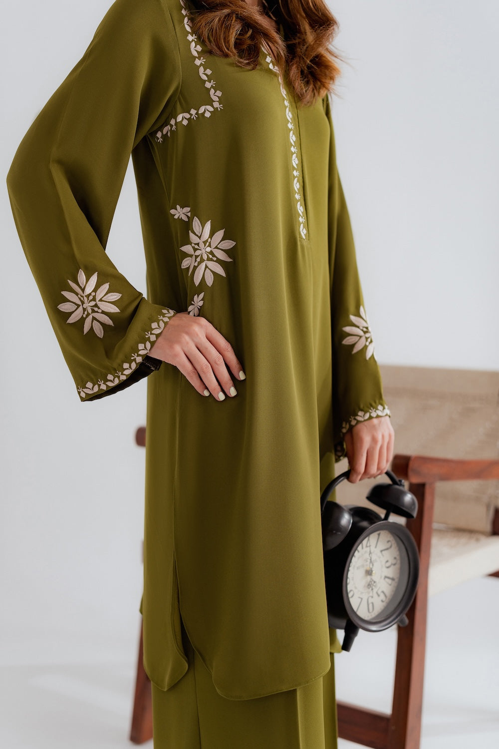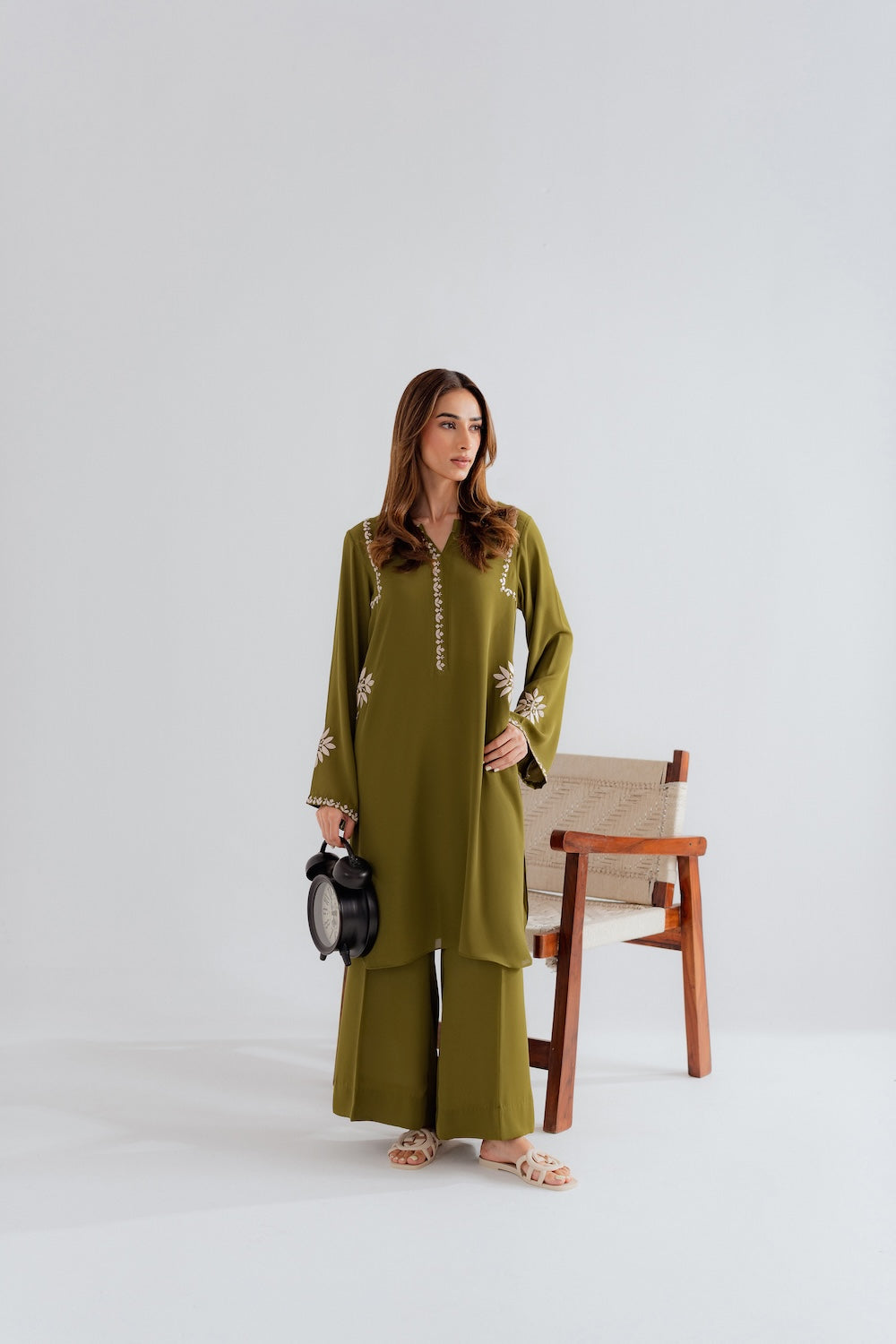 Effortlessly chic and refreshingly modern, this 2-piece olive green outfit is the perfect blend of simplicity and style. Designed with minimal embroidery on the sleeves, neckline, and pockets, it offers a clean, contemporary look with just the right hint of detail. The rich olive tone adds depth and versatility, making it an ideal choice for both casual outings and elevated daywear. A must-have for those who love understated elegance with a modern edge.